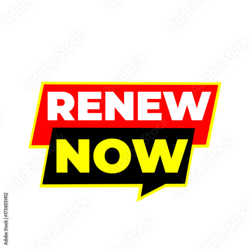 RENEW NOW png, update process tag, subscription label design, refresh system concept, clean layout art