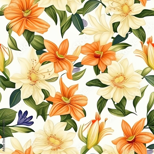 Repeating floral vector pattern. Can be used for printed materials - leaflets, posters, business cards or for web. Generative AI