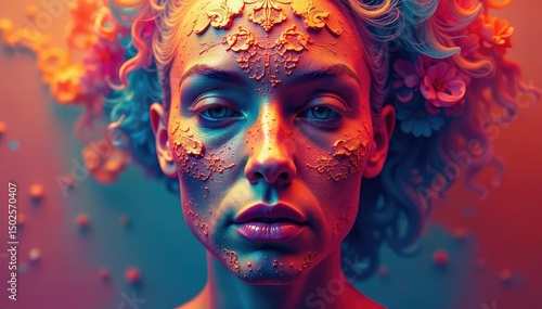 Repetitive shapes creating a facial structure, stylized design, graphic, template, art