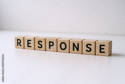 Response written on wooden blocks aligned in a row representing communication and a solution to a problem