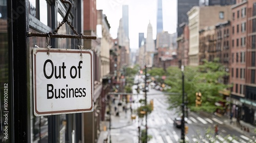Retail Sector Crisis Aerial View of Closed Storefronts with Out of Business Signs - E-Commerce Growth Amid Economic Adjustment