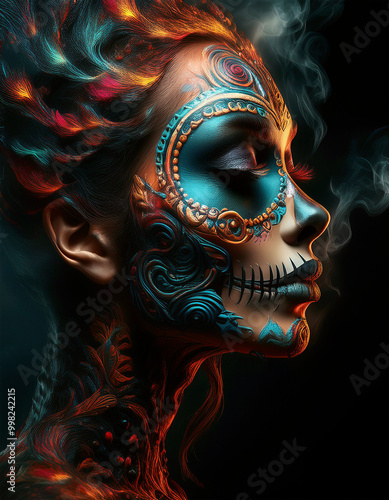 mexico, death, woman, paint, make-up, fantasy, face, portrait, glamour, elegance, costume, art, style, candle, mystical, party, caravel, beautiful, face, traditional, halloween, cemetery, dead, carnival, skull, mystery