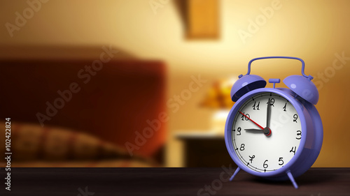 bedchamber, clock, morning, ring, alarm, time, analog, three-dimensional, retro, classic, hours, minute, concept, graphic, design, background, object, number, symbol, dial, closeup, idea, abstract, arousing, up, room, interior, sleep, timer, rest, nap, alert, bell, stress, bedtime, bedside table, snoozing, night, cosy, blue