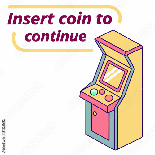 Retro arcade game machine insert coin continue