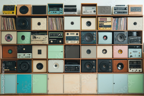 retro, collector, room, vintage, audio, equipment, vinyl, record, speaker, nostalgic, furniture, storage, wooden, design, home, decor, music, sound, classic, organisation, display, collection, wall, shelf, modern, interior, aesthetic, colourful, arrangement, home office, entertainment, hobby, lifestyle, eclectic, unique, technology, craftsmanship, art, audio system, phonograph, ambience, cosy, inviting, stylish