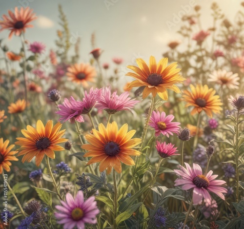 joyful, pastel, positive, vibrant, festive, greeting, graphic, meadow, pretty, daisy, paper, retro, happy, illustration, sunflower, poppy, vintage, art, bouquet, floral, wildflower, card, cheerful, design, texture, celebration, flower, colourful, bluebell, field, bright, nature, buttercup, background, bloom, summer, garden, blossom