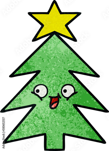 retro grunge texture cartoon christmas tree