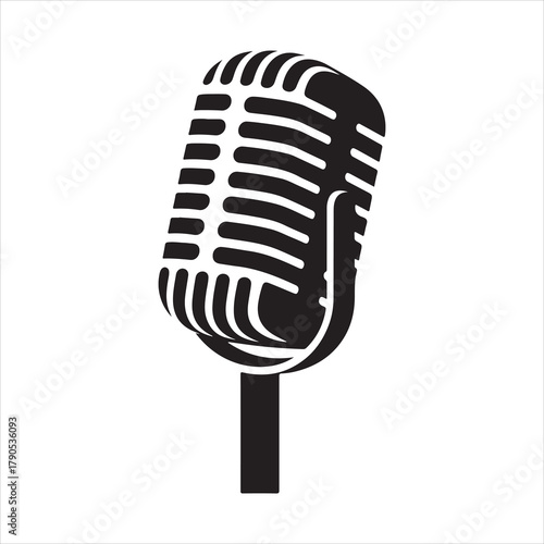 microphone, retro, vintage, icon, audio, sound, recording, music, broadcast, podcast, vocal, performance, entertainment, communication, voice, classic, old, antique, studio, equipment, professional, media, show, radio, concert, event, speaker, sing, speaking, silhouette, black-and-white, illustration, symbol, graphic, design, simple, element, isolated, white background, vector, object, technology, art, acoustic