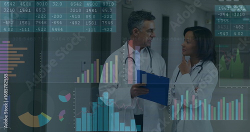 datum, chart, doctor, hospital, clipboard, medicals, health care, professionalism, analysis, technology, collaboration, diagnostic, african american, adult, woman, senior, male, colleague, corridor, clinical, semitransparent, numerical, business, dress shirt, attaching, listening, discussing, reviewing, information, note, white, grey, wall, door, tiled floor, equipment, centered, pair, professional, thoughtful, office
