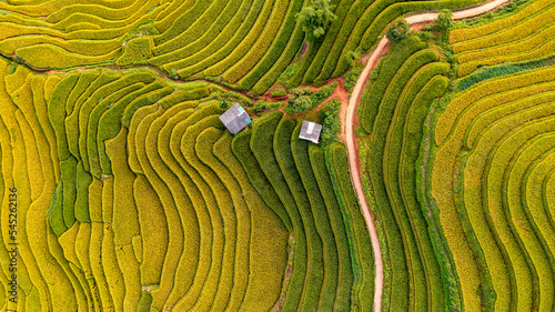 Rice fields on terraced prepare the harvest at Northwest Vietnam.