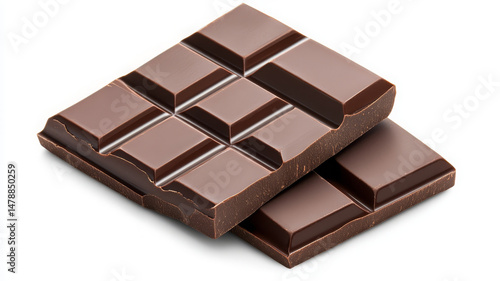 Rich dark chocolate bars stacked elegantly, showcasing their smooth texture and glossy finish