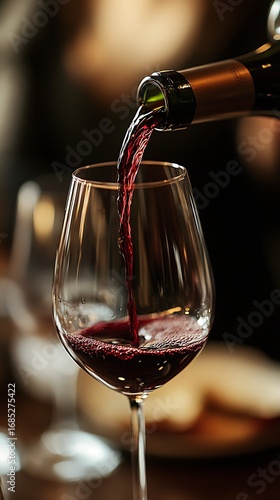 Rich Red Wine Pouring Into Glass, Gourmet Dining Experience, Fine Wine Celebration