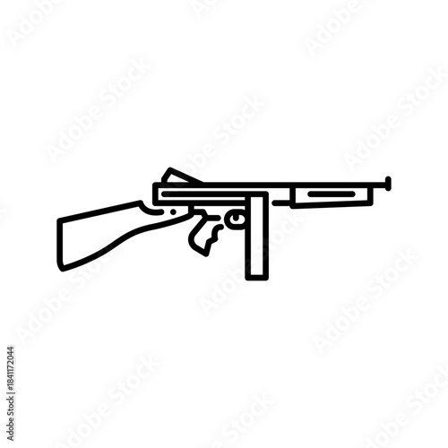 gun, machine, firearm, icon, outline, illustration, line, automatic, weapon, auto, tactical, firing, munition, military, combat, defense, caliber, steel, modern, support, power, warfare, action