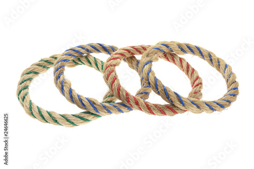 rope, circle, loop, braided, ring, overlap, overlapping, row, line, white background, cut-out, cut-out, isolated, object, studio shot, still life