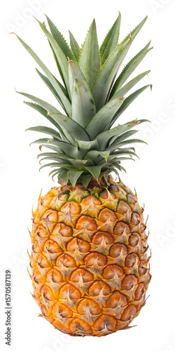 pineapple, fruit, tropical, ripe, juicy, yellow, orange, skin, spiky, texture, sweet, fresh, whole, exotic, delicious, healthy, nature, nourishment, produce, natural, stem, leaf, crown, plant, botanical, rough, surface, vibrant, edible, food, organic, summer, island, citrous, harvest, snack, fiber, vitamin, dessert, closeup, macro, beauty, tasty, isolated