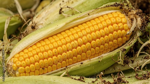 corn, cob, yellow, stalk, husk, kernel, closeup, agriculture, harvest, farm, field, rural, organic, farming, produce, harvesting, crop, fresh, food, agronomy, maize, autumn, season, growth, plant, nature, dirtied