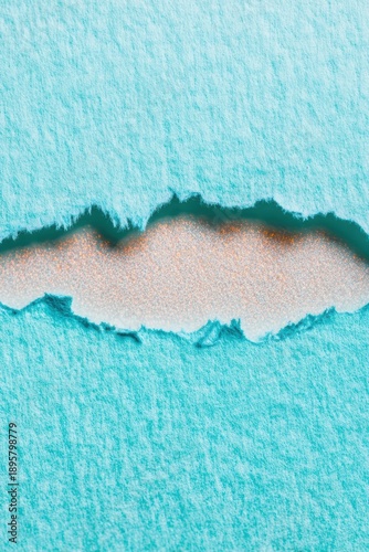 Ripped torn blue paper edge with jagged texture reveals a neutral background for craft labels and advertising layout with copy space for creative design mockup
