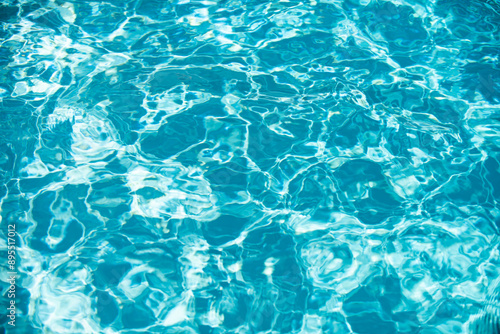 Ripple Water in swimming pool with sun reflection. Wavy water background.