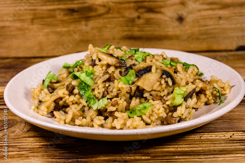 Risotto with mushrooms and paesley in a plate