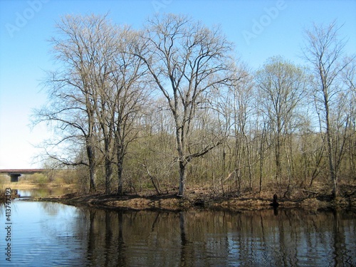 river in late autumn yellow and red leaves on the trees