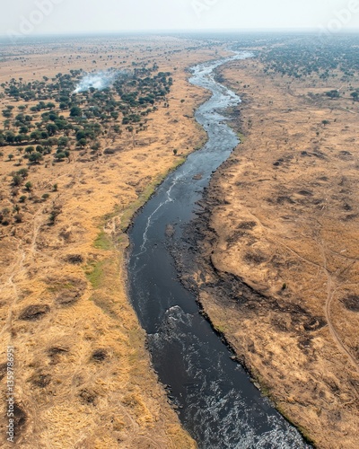 river, savanna, africa, landscape, arid, terrain, aerial, view, nature, wilderness, tree, dry, water, environment, ecology, remote, travel, tour tourism, scenic, exploration, adventure, conservation, open, space, huge, stretch, meandering, course, natural, beauty, climate, change, drought, global, warming, habitat, preservation, ecosystem, geography, geology, wildlife, reserve, panorama, earth