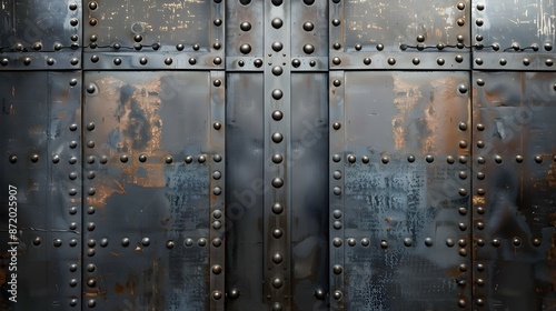 Riveted Steel Plates with Visible Seams,Rugged Industrial Metal Background