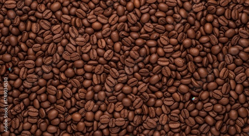 Roasted coffee beans forming a rich, dark brown textured background pattern
