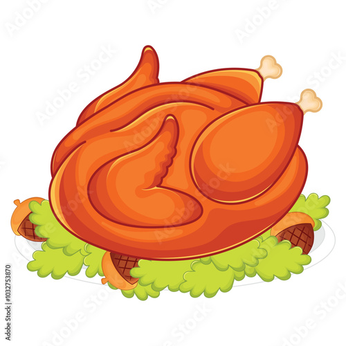 Roasted turkey on a bed of greens, festive meal, Vector