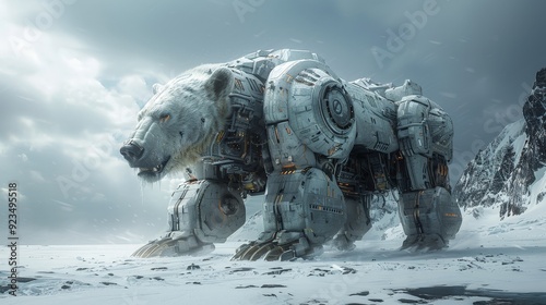 Robot polar bear on ice.