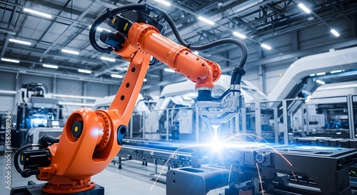 welding, robot, automation, industry, factory, manufacturing, machine, technology, engineering, production, industrial, innovation, futuristic, metal, spark, automated, equipment, machinery, robotic, precision, modern, process, orange, steel, metalwork, assembly line, ai, artificial intelligence