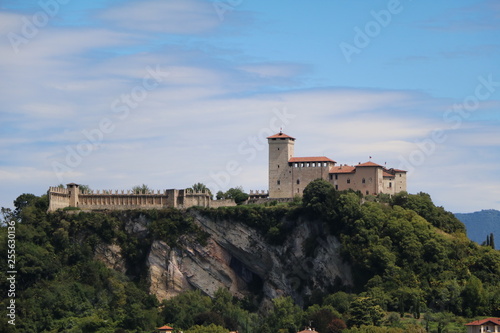 Rocca d'Angera in Angera view from Arona at Lake Maggiore, Italy