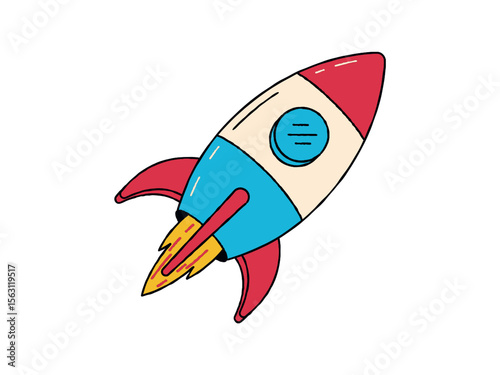 rocket, space, red, isolated, vector, spaceship, illustration, cartoon, ship, science, icon, missile, launch, white, fly, symbol, art, flying, colours, flying saucer, toy