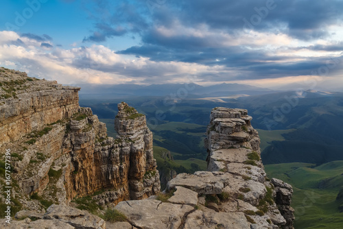 Rocks on the edge of the Bermamyt plateau, in the mountains of the Northern Caucasus