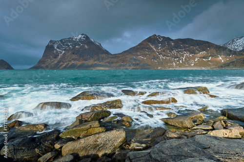 lofoten, norge, ocean, landscape, scenery, scandinavia, scandinavian, beach, cloud, cloud, grass, norwegian, plant, scenic, sea, season, sky, snow, storm, storm cloud, storm cloud, stormy, water, wave, winter, winterly