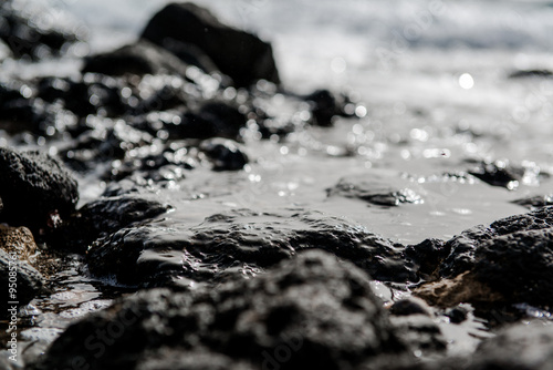 beach, ocean, stone, volcanic, atlantic, canary island, tenerife, spain, rock, rocky, coast, coastal, water, seacoast, shore, nature, background, day, daylight, black, natural, nobody, geology, formation, geologic, closeup, closeup, macro