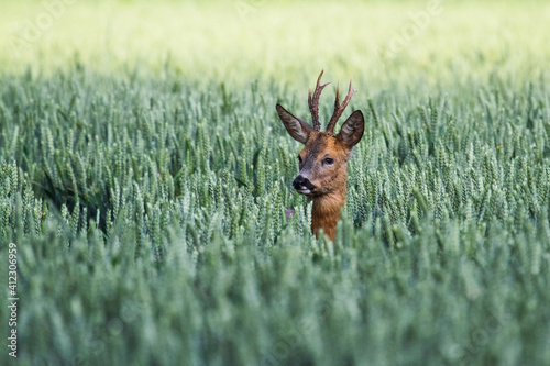 cornet, corn, big, antler, animal, rutting season, mating season, wildlife, wild, trophy, summer, grooved, roebuck, capreolus capreolus, nature, male, hunting, hunt, horn, horizontal, hidden, cervid, cornfield
