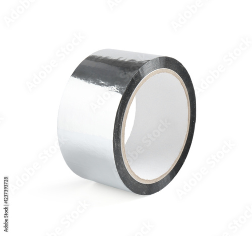 Roll of silver adhesive tape isolated on white
