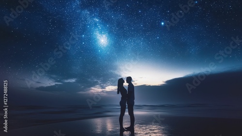 couple, romantic, sharing, tender, moment, sky, star, beach, silhouette, love, intimacy, affection, nature, evening, ocean, togetherness, twilight, connection, human relationships, passion, horizon, dreamy, serene, emotion, scenery, romance, night, landscape, tranquil, youth, harmony, dazzling, space, peaceful, adventure, bliss, warmth, beautiful, beauty, scene, calm, magic, enchanting, display