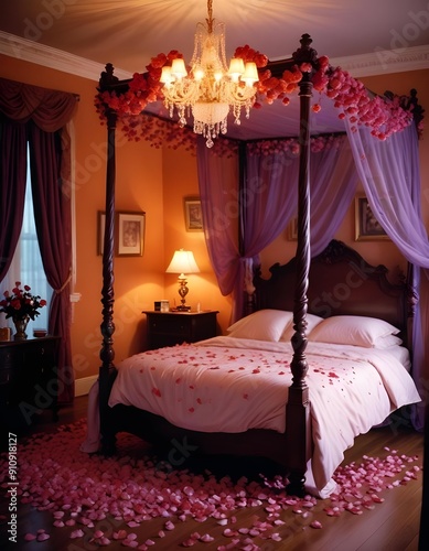 Romantic Rose Petal Trail in a Twilight Bedroom theme