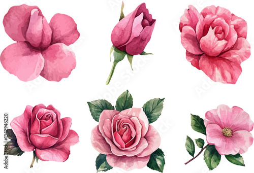 Romantic Watercolor Pink Rose Flower