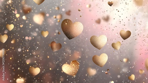 Romantic Wedding-Themed Glowing Heart Patterns and Golden Sparkles Background for