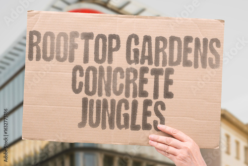 “Rooftop Gardens Concrete Jungles” spotlighting the green revolution blooming on city rooftops. URBAN. PLANTS. GROWTH. ECOLOGY. ARCHITECTURE. INNOVATION. CLIMATE