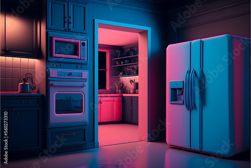 room, architecture, decoration, neon, blue, pink