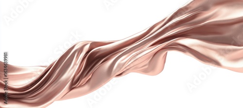 Rose gold fabric elegantly flows, creating soft, swirling curves against a white backdrop