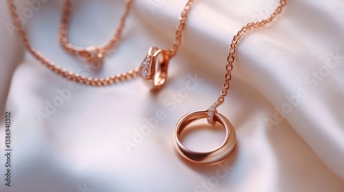 Rose gold necklace, silk, studio, jewelry ad