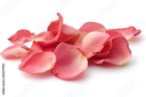 Rose petals scattering in the air isolated on a white background