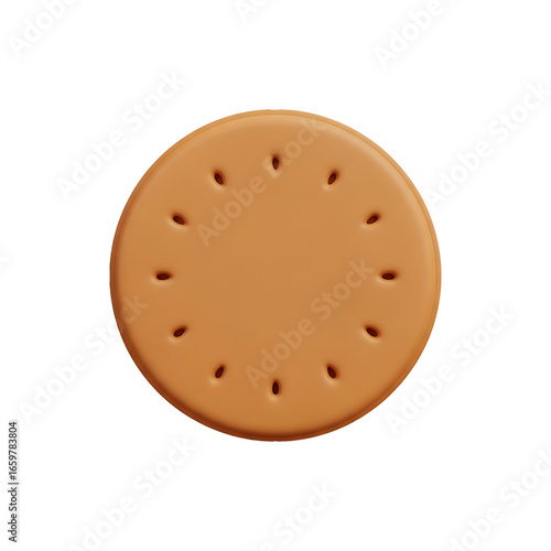Round biscuit with evenly spaced holes against a black background