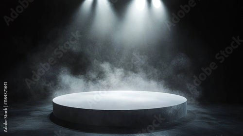 pedestal, light, spotlight, smoke, black, round, stage, dais, realistic, three-dimensional, floor, design, gallery, illumination, vector, space, floodlight, club, beam, fog, spot, racked, illustration, white, empty, exhibition, searchlight, concert, glow, projector, cloud, dark, scene, lamp, reward, illuminated, abstract, studio, night, circle, arena, background, presentation, platform, step, award, winner
