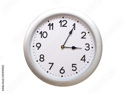 Round Silver Wall Clock Showing 03:05 or 15:05 Isolated-White. Useful for concepts like noon, midnight, deadline, countdown, or time management.