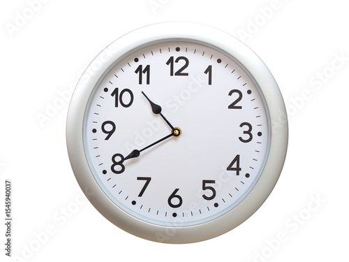 Round Silver Wall Clock Showing 10:40 or 22:40 Isolated-White. Useful for concepts like noon, midnight, deadline, countdown, or time management.